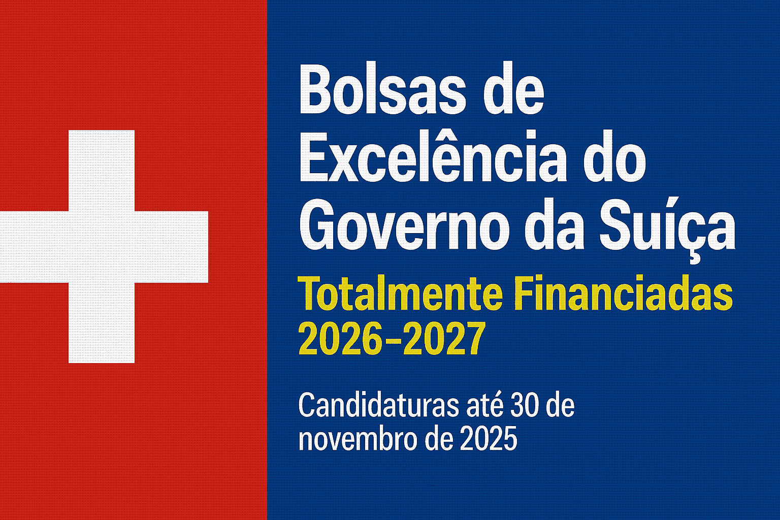 As Bolsas de Excelência do Governo Suíço 2026–2027 estão oficialmente abertas!